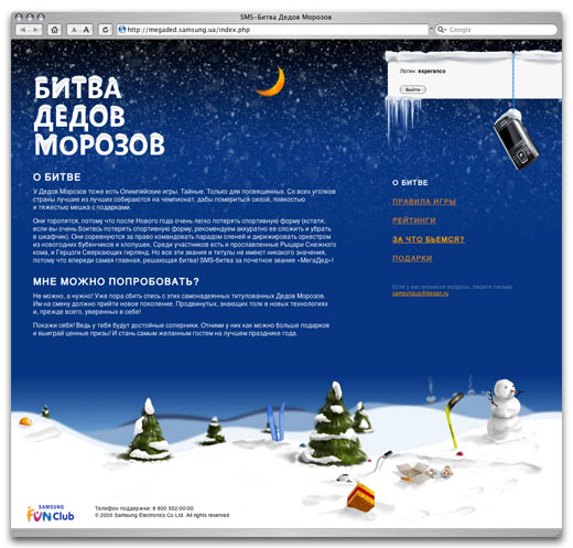 Samsung holds the SMS game contest “Battle of Santas” on December 1 – January 15. Players control their own Santas by sending messages with commands.