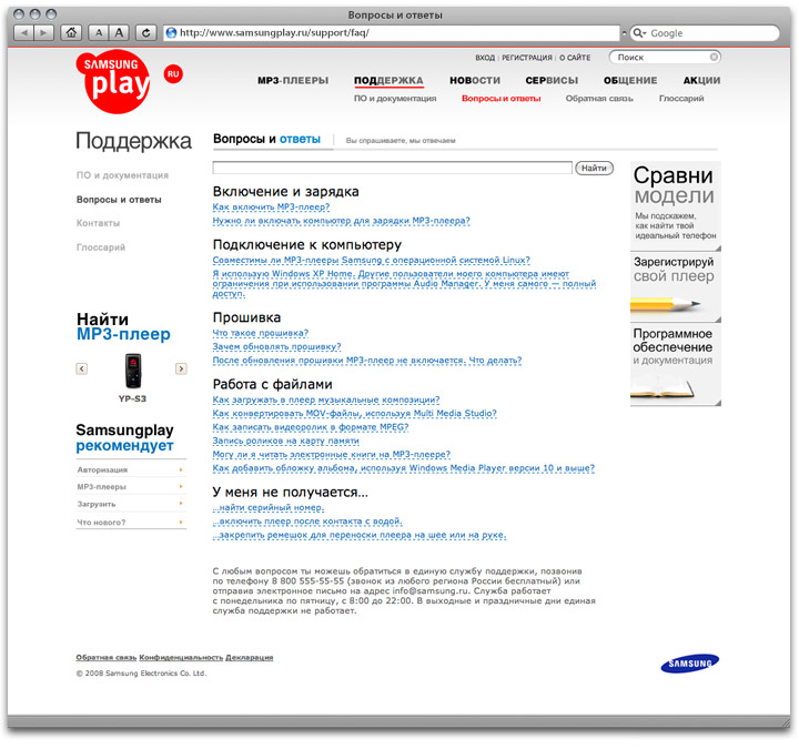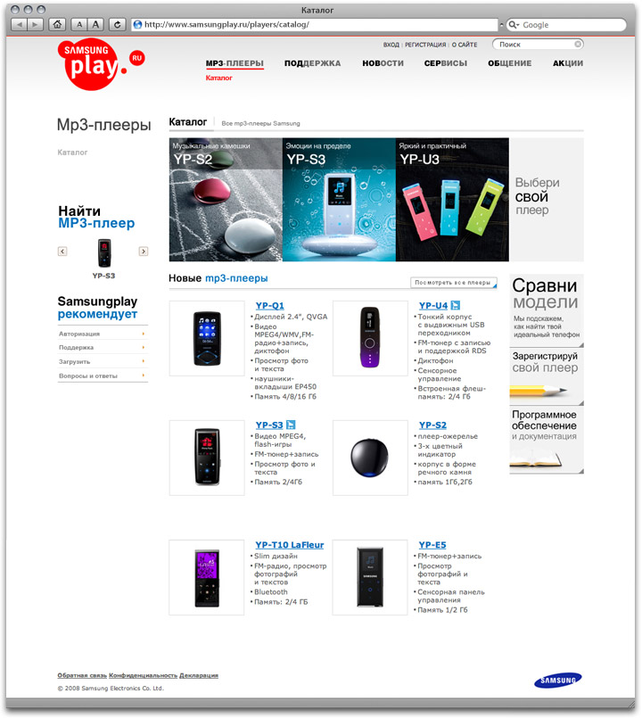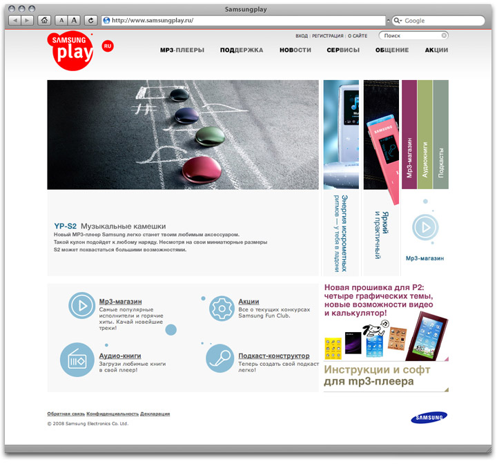 SamsungPlay website is a place where people who have of Korean-produced MP3 players can find overviews and other useful information and docs on Samsung devices, as well as a collection of wallpapers and screensavers, and FAQ. ![]() Front page with bubble banners