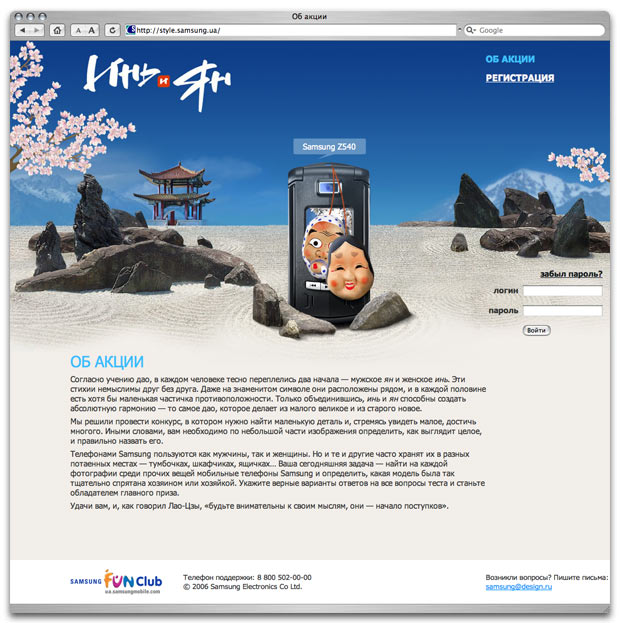 The person who completes the task the fastest gets a free dinner at a restaurant. Another five best players are awarded favors with Samsung Fun Club insignia. The website was ordered by Samsung Electronics Ukrainian representative office. |