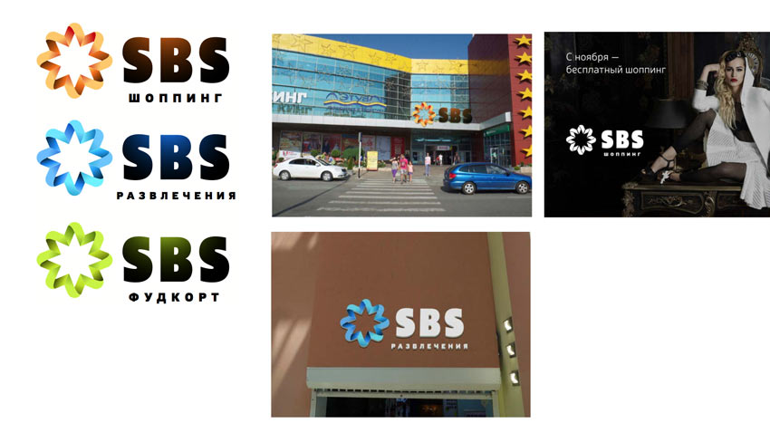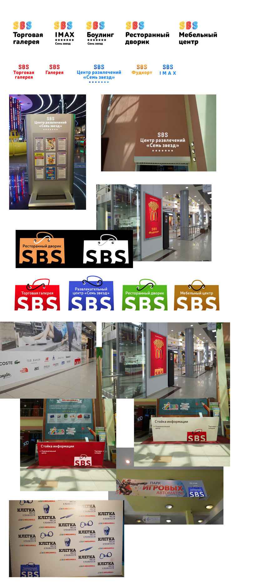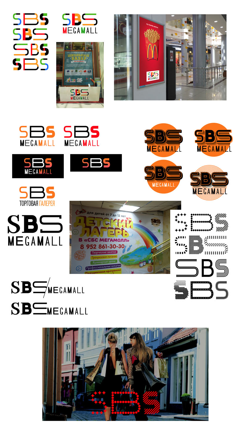 Maybe we can show that the shopping center has huge areas for play and entertainment? Testing the ideas next to the tenants’ logos to see how they would work together.