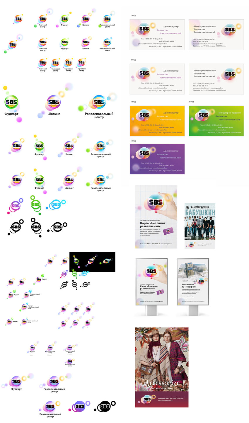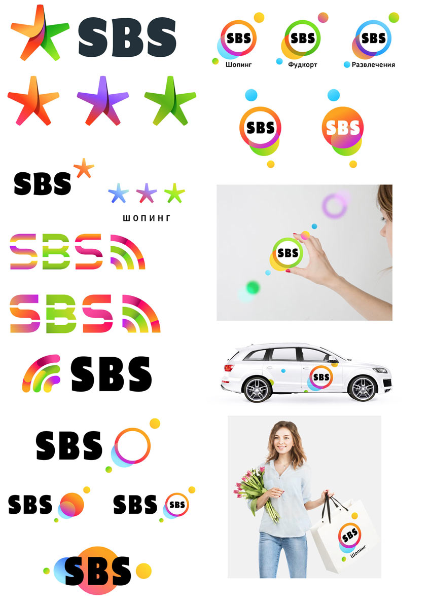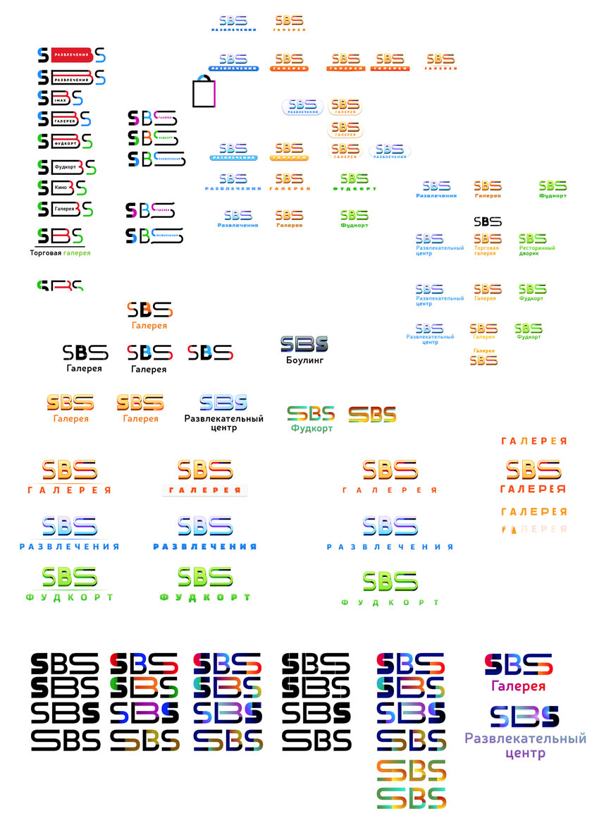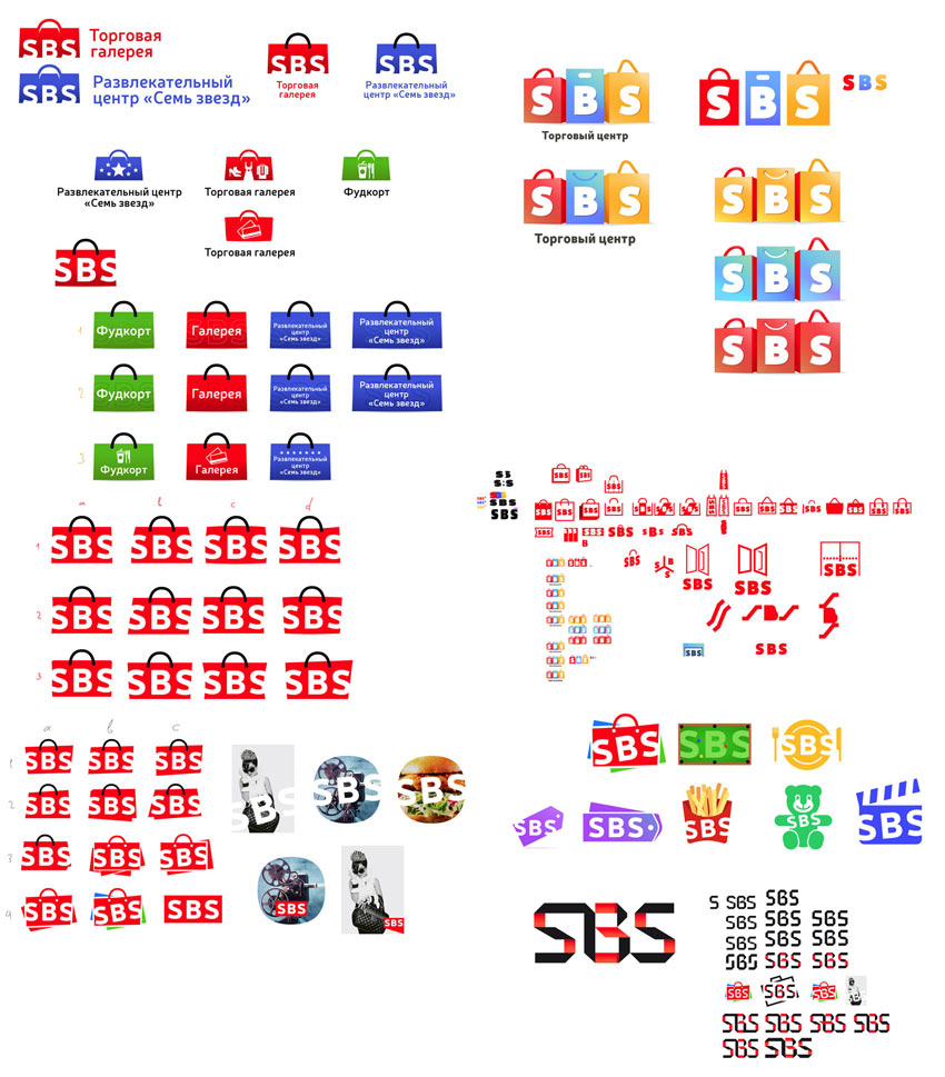 Developing the idea. The art director asks to search for other solutions, too. For example, a shopping bag as a background for the mall’s name. The letters will be placed on different colored bars.