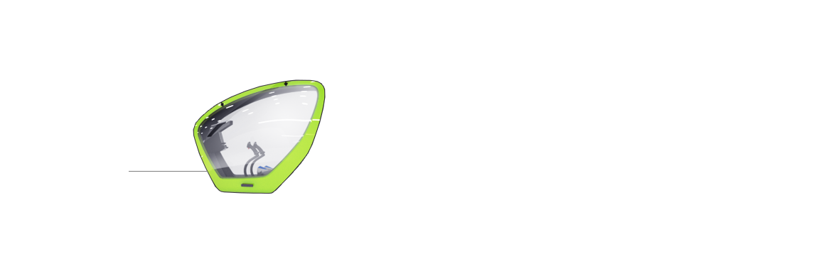 Bottom part of the windshield covers the foot pedal area and increases visibility