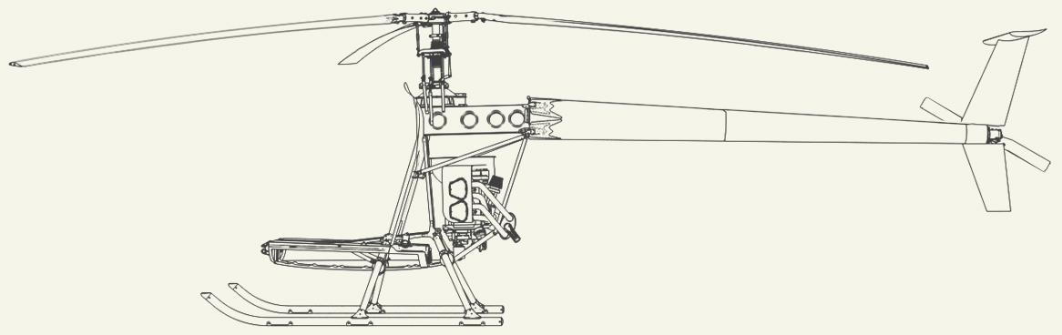 The appearance of the helicopter borrows from automotive design making it more understandable and attractive to amateur pilots. The engine uses standard A-95 gasoline which allows refueling at regular gas stations. This effectively removes any restrictions on the Scout’s flying range.