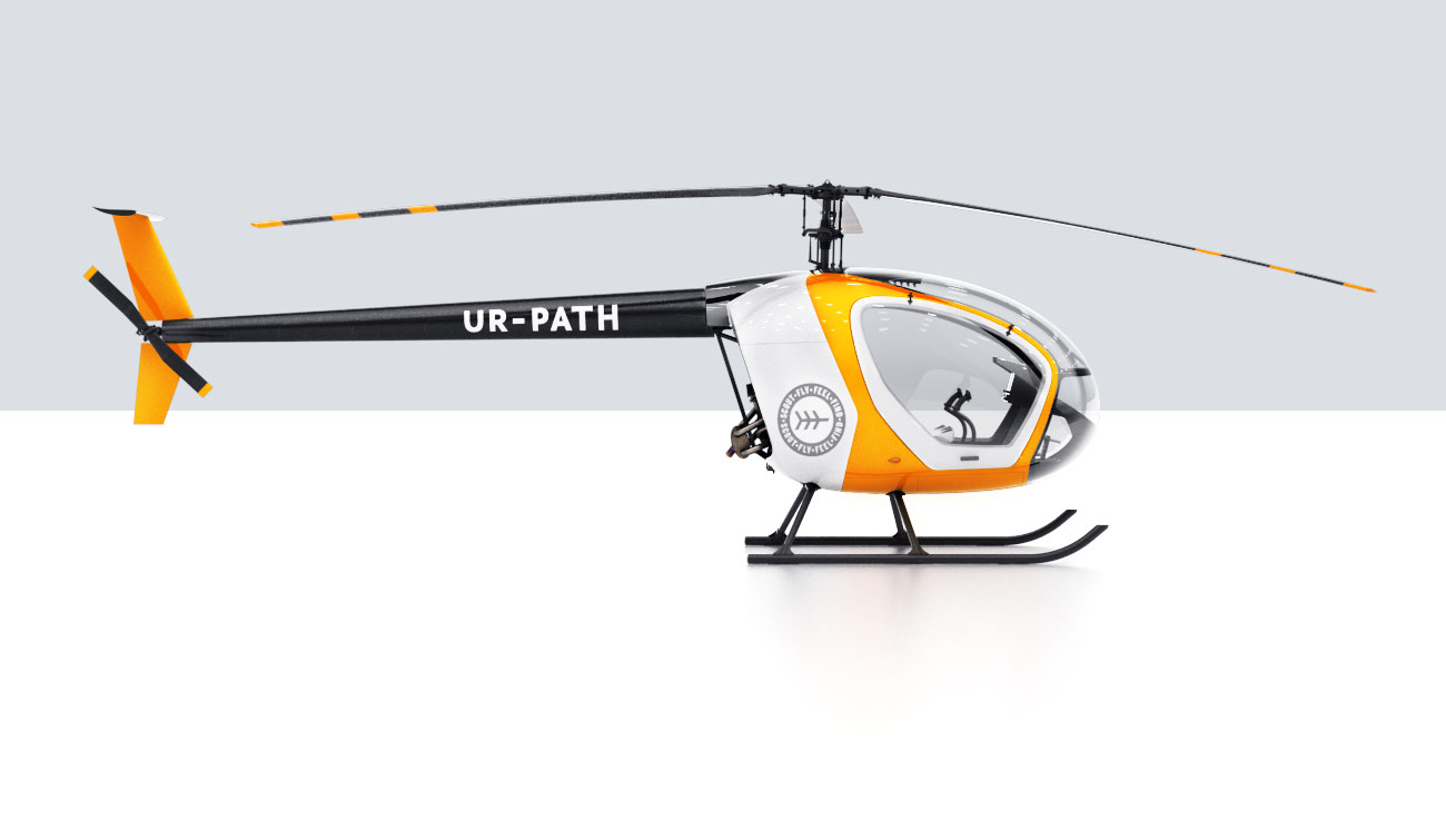 Scout is a light experimental helicopter created by Horizont design bureau famous for building aircraft with unique flying qualities. Helicopter exterior, interior and air navigation display interface, all sharing the idea of simple and accessible flight, were created at the studio.