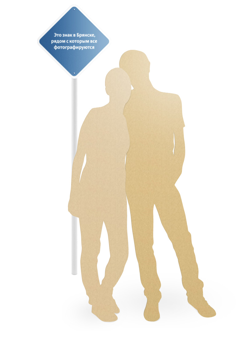 The double-sided Sign Everyone Takes Pictures With is installed at 8 Ulitsa Internatsionala, in front of the Boom City shopping center.