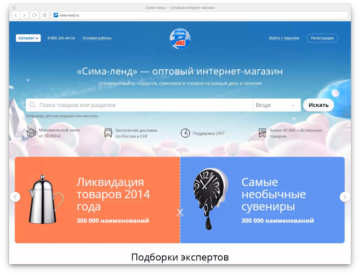 Sima-Land online store offers souvenirs, toys, tableware, sundries, decorations and other everyday items. The store is most often used by buyers, small store owners and employees of companies in charge of purchasing stationery. Sima-Land offers both retail and wholesale shipments. To allow buyers and sellers to easily manage the huge selection of products, an online store with many useful features was created for the company.