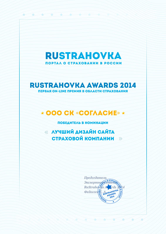 Rustrakhovka awards Category: Best Insurance Company Website Design. October 2014.