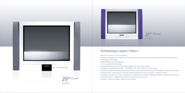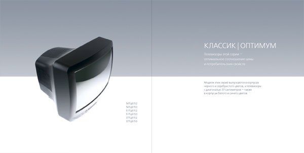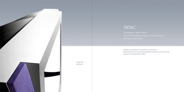 The catalog represents the entire 2003 product range of Sokol TV sets and DVD players. The design of the 30-page catalog is lightweight, concise and clean. The photos of all TV sets and DVD players featured in the catalog were taken in the photo studio on the fifth floor of Art. Lebedev Studio. For the shooting session, designers had to first lift to the fifth floor and then take down around 200 kilograms of modern video equipment. ![]() Lux series