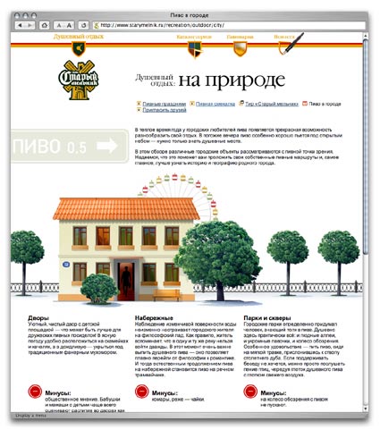The key theme of the website: soulful rest with soulful beer Stary Melnik. ![]() Website main page