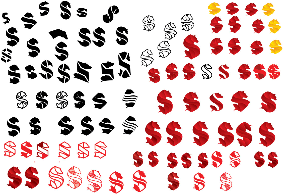 In number 1 the client liked that the bear and bull heads were drawn in equal detail.