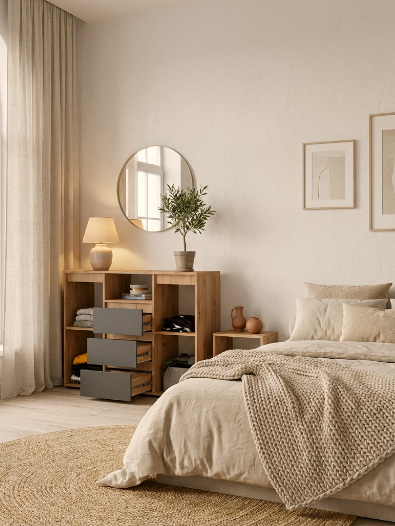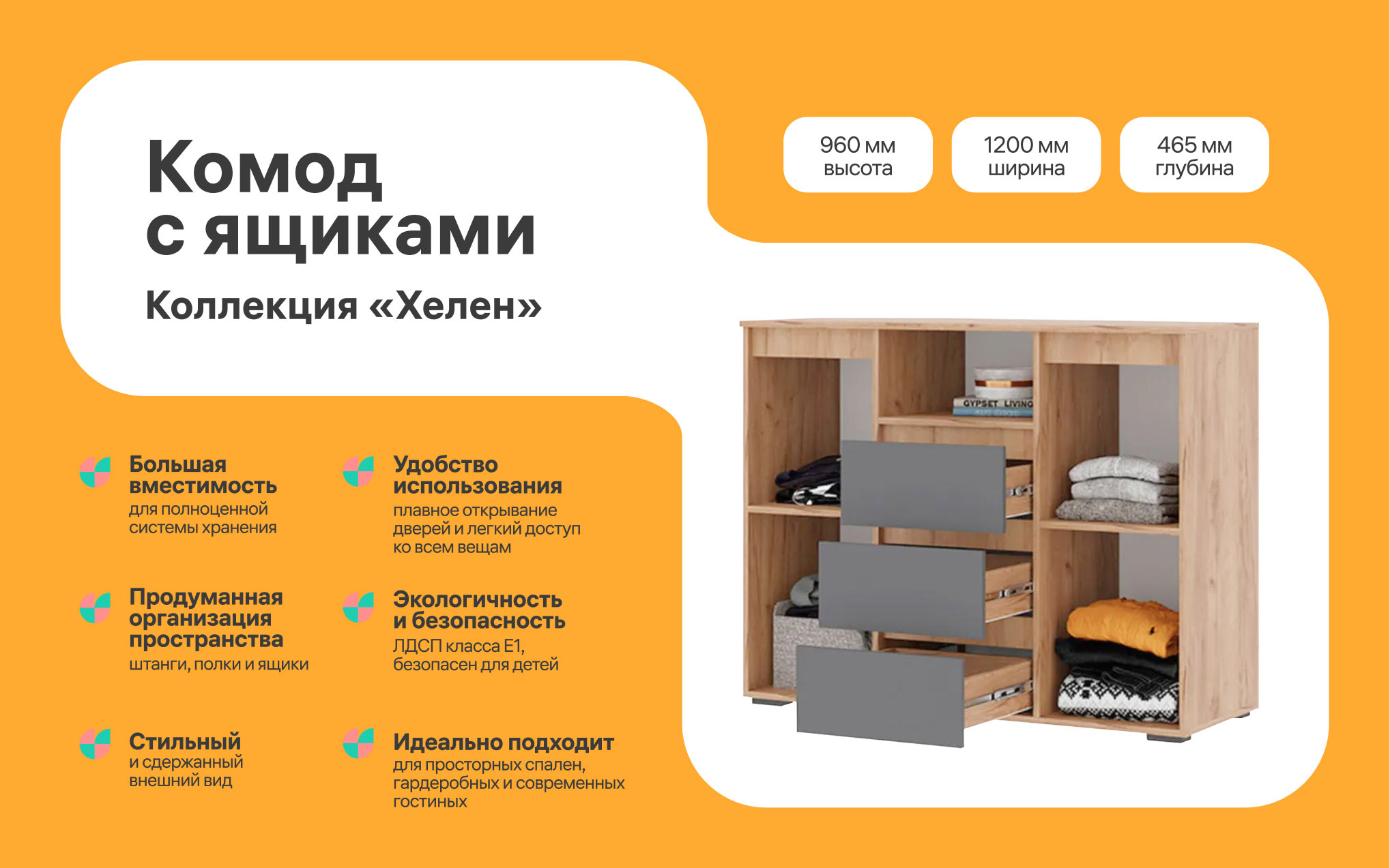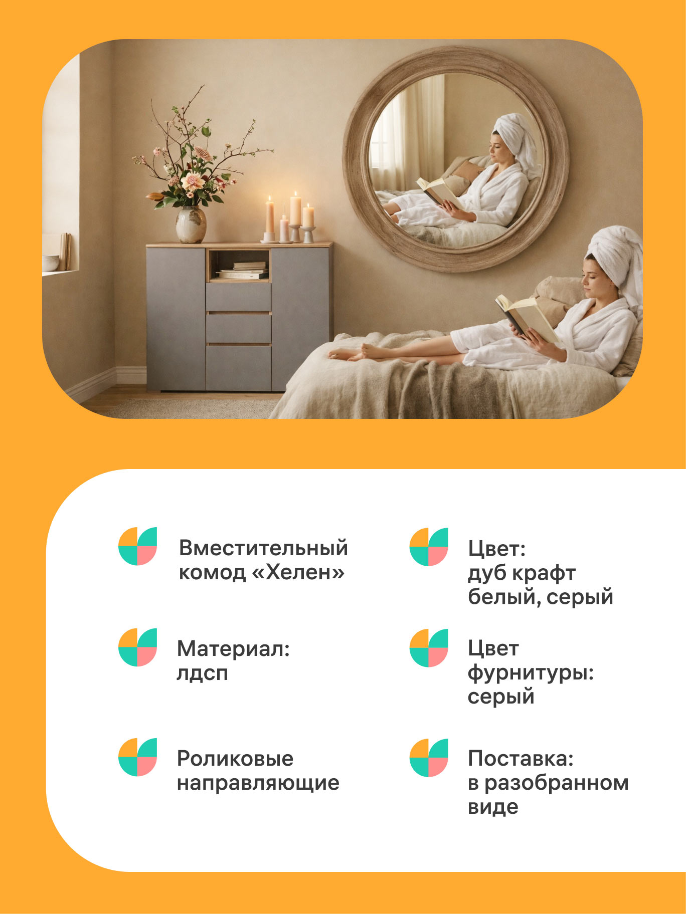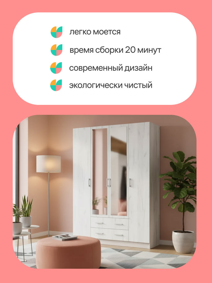 The combination of coral, light turquoise, and warm orange shades in the corporate color palette creates a cozy and warm home atmosphere.
