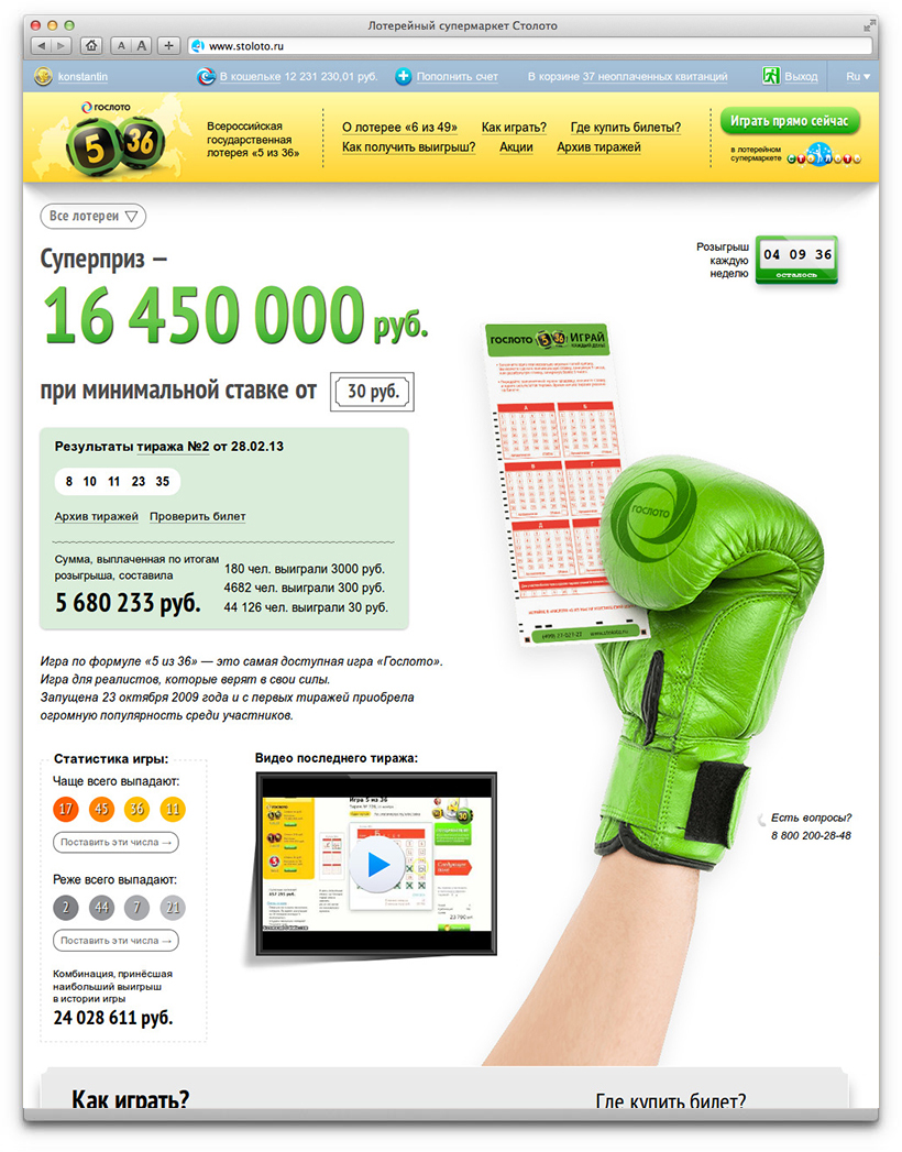 Another sport lottery “5 out of 36” is represented by a boxer