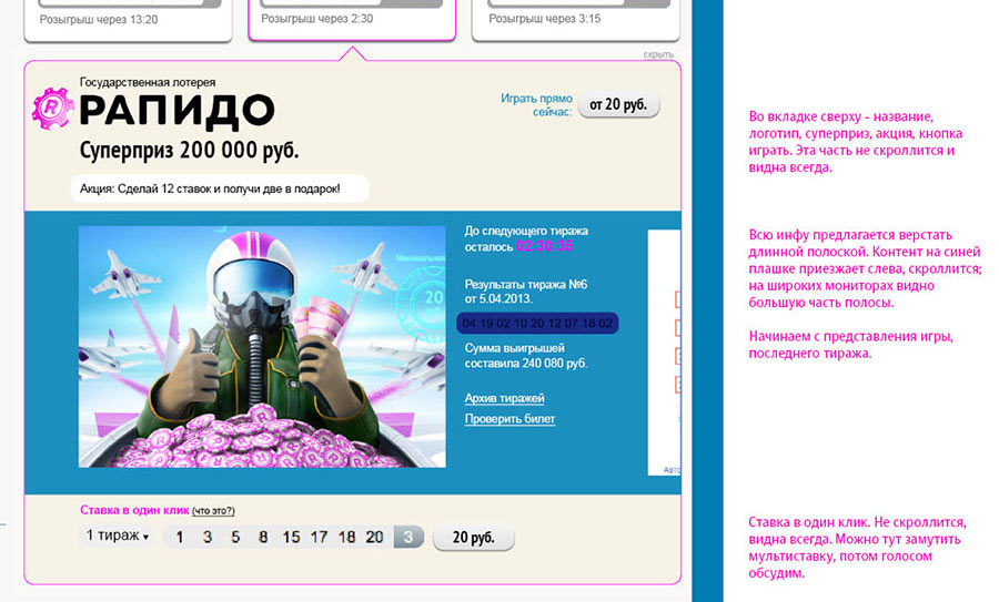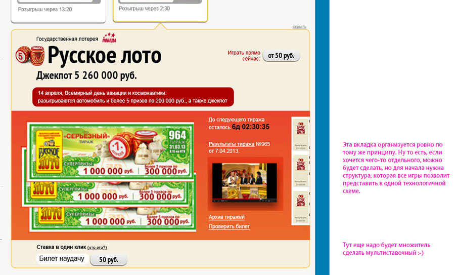 Trying different options for positioning lottery tiles on the main page to solve various arising issues.