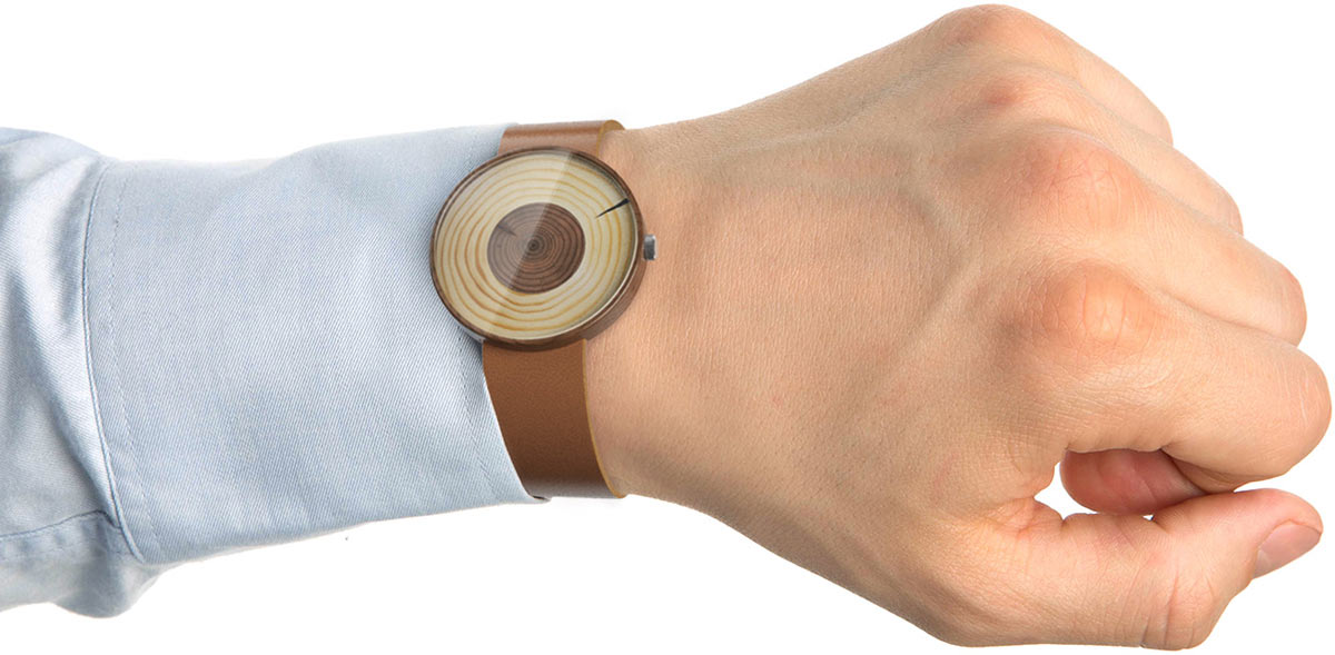 Stubus is a waterproof, lightweight watch with a display that simulates cut section of a tree with visible growth rings.