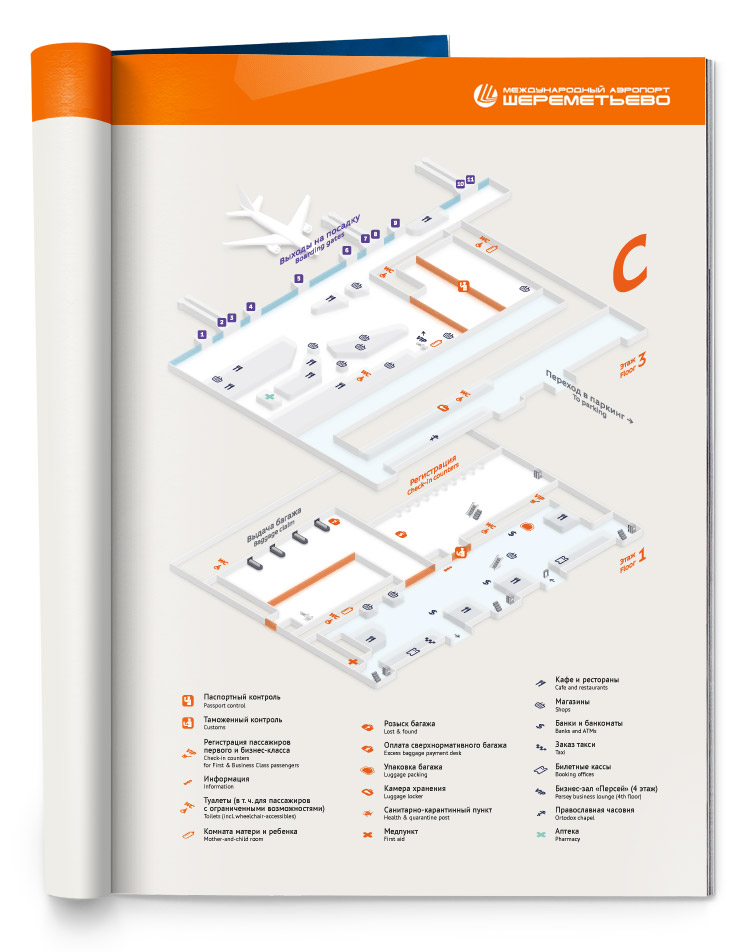 Individual maps were created for arrival areas. A common area plan was developed for Terminal C, where arrival and departure areas are combined.