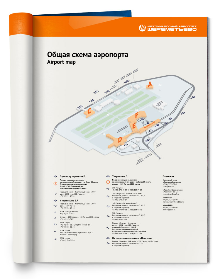 The overview map shows the location of the terminals and other airport buildings, as well as nearby roads, parkings and hotels.
