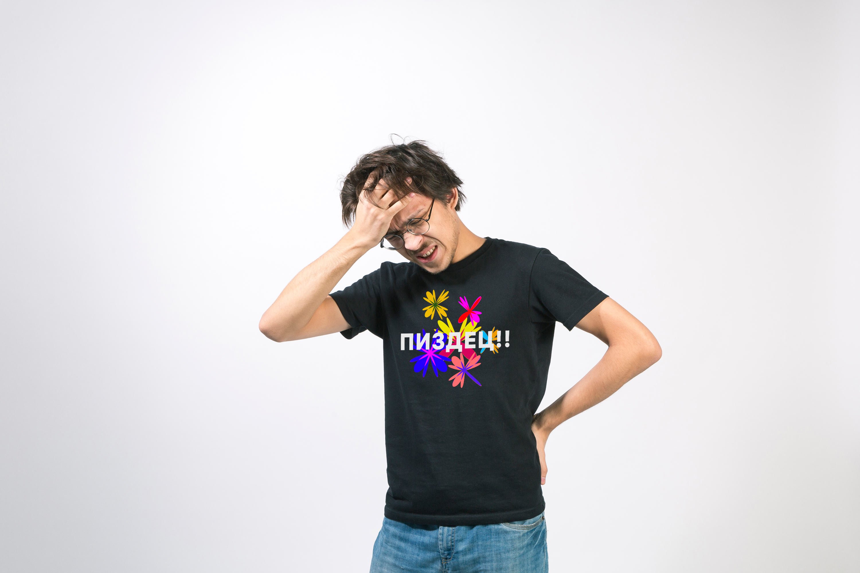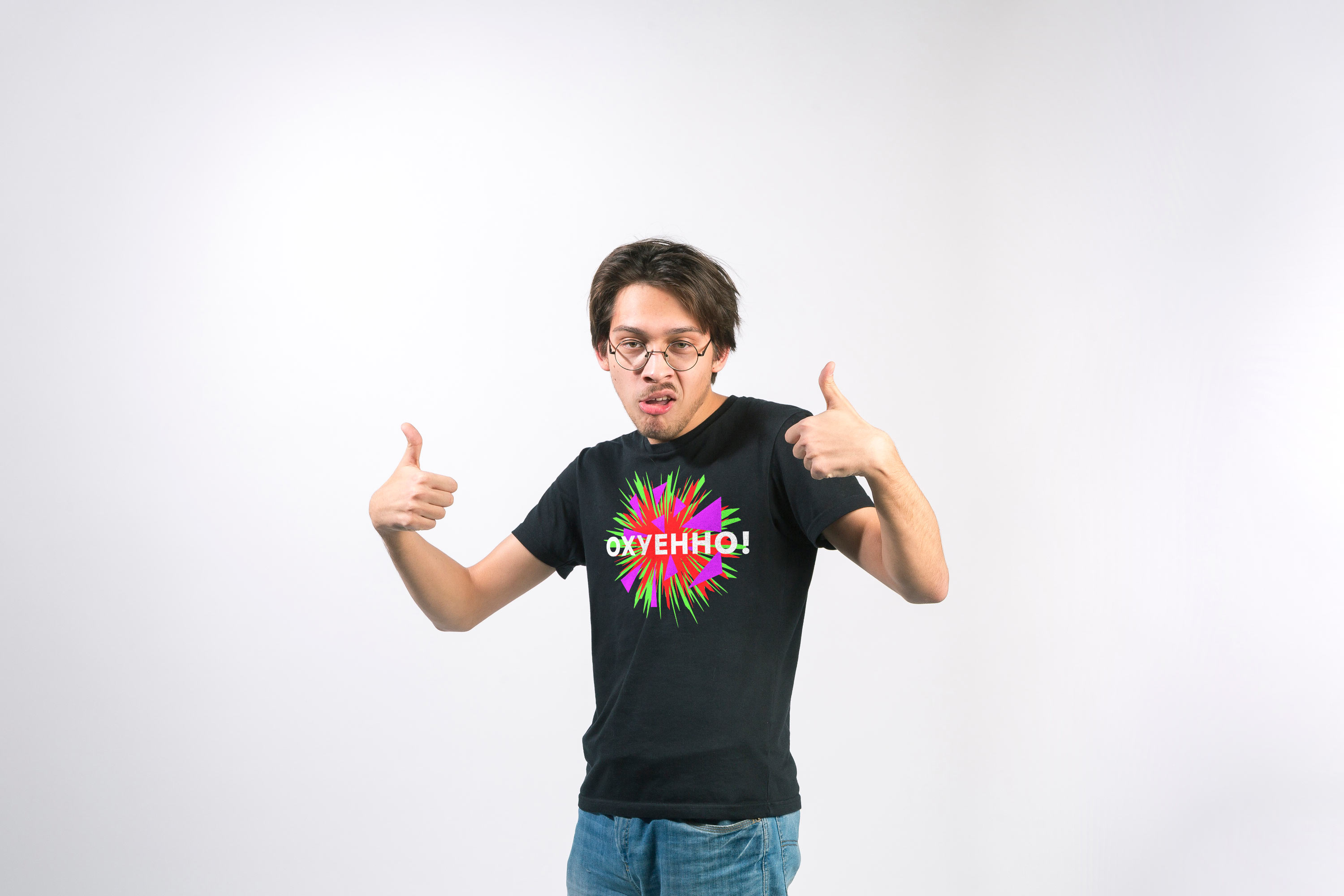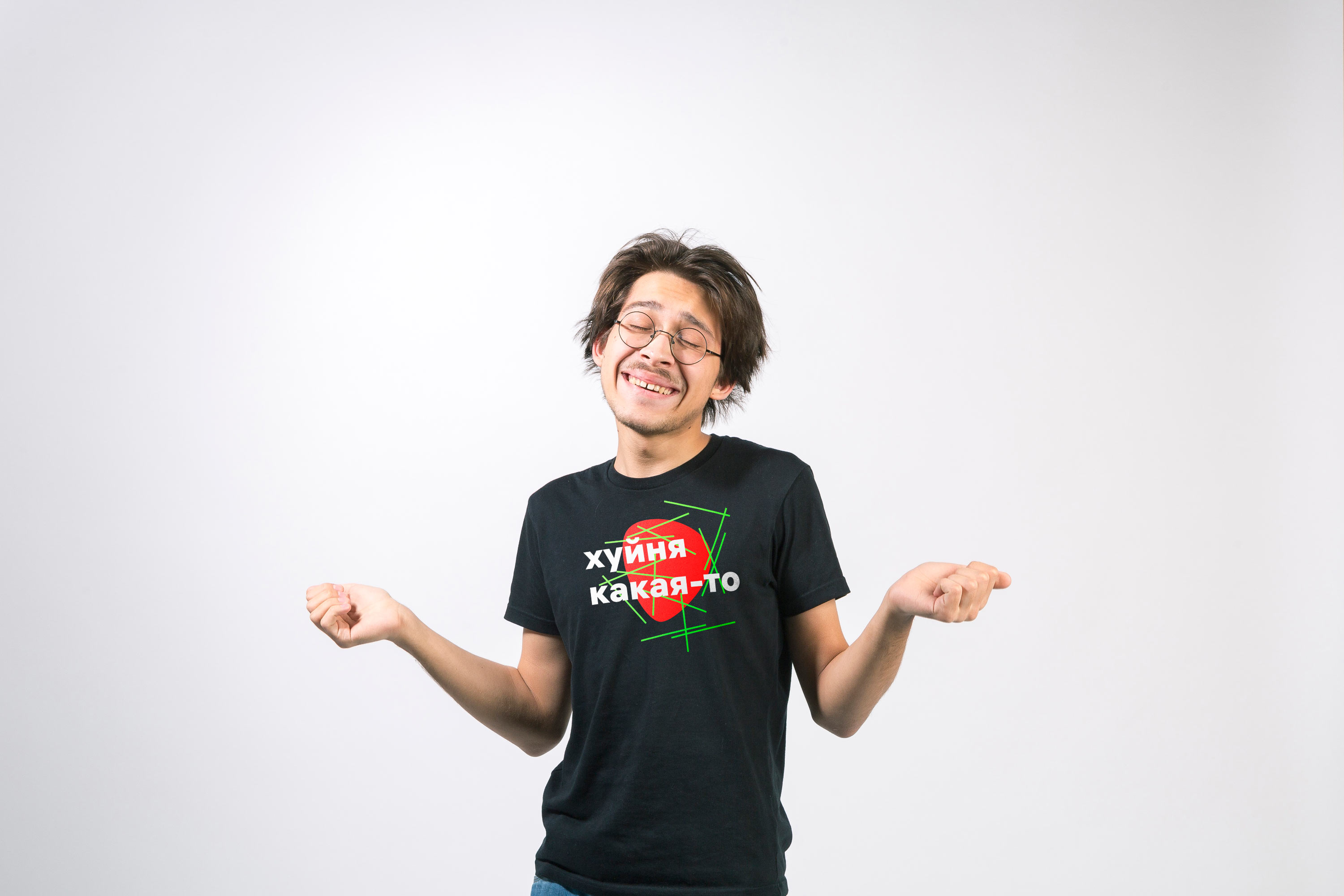 The t-shirts are based on the Ohuenny Telegram sticker pack. They have pictures that make your eyes twitch and shed tears of delight, all at the same time.