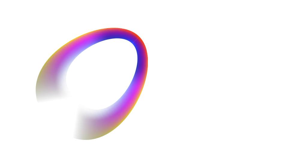 The logo contains a rainbow-colored orbit and a flame escaping from the nozzle of a soaring rocket