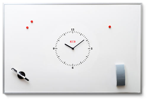 TaskWatch whiteboard is a wall-mounted write-on/wipe-off panel with a clock in the middle. You can use markers to write all sorts of messages or draw images beside the relevant hour, which makes TaskWatch a helpful tool for organizing ones time or sharing information with co-workers. ![]() Model 01 (with a complete round dial)