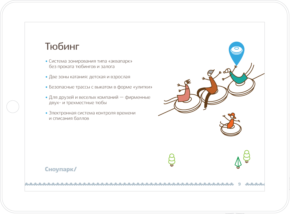 Terra-Ski Park is a family holiday complex located 38 km from Nizny Novgorod and near the cottage community of the same name. Construction of the park is scheduled to finish in 2016. A logo, corporate identity and animation characters for the park were created at the studio.