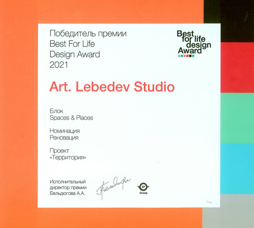 Key visual Renovation Façades Interior and wayfinding Territoriya building renovation concept award Award Overview Award Best for Life Design Award 2021 October 2021 The Territoriya building renovation concept won the Best for Life Design Award 2021 in the Renovation category.