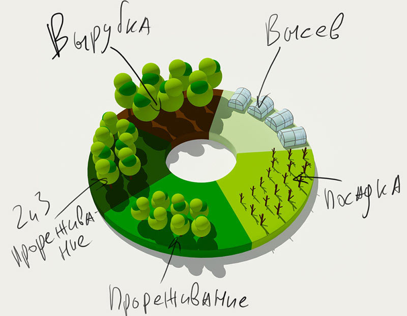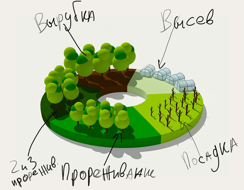 Talking about collection and sorting of used packaging. First we decide to make an illustration with three ways of waste handling.