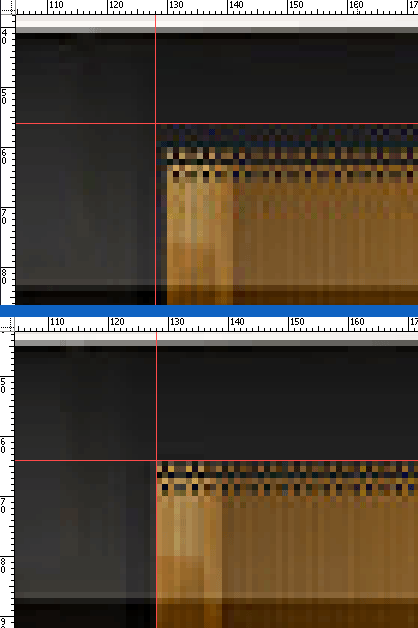 Lets see how the position of rectangular objects affects file size and quality. In the first example the oven is placed at random. Before saving the second file, I aligned the image with the eight-pixel grid. Quality settings are equal for both (55):