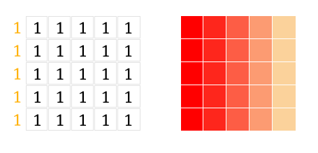 Here is an example of how they work. Lets take an image 5×5 pixels with horizontal gradient and draw a chart of how it can be saved into a file (each number stands for a unique color).