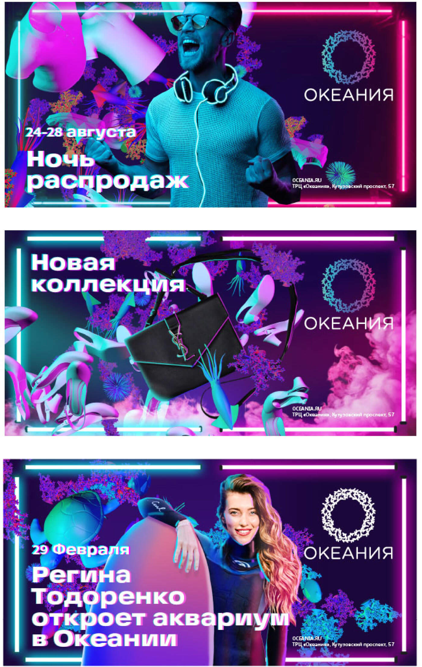 Company website Shopping center websites Storefronts Installations Advertising Создание рекламных плакатов для ТРЦ «Океания» Process Overview Process