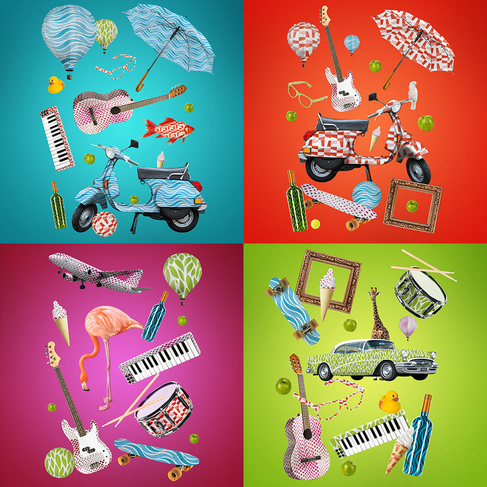 The pattern is a go. The art director suggests to assemble a composition out of the objects. Using patterns created by the architects of the shopping center.