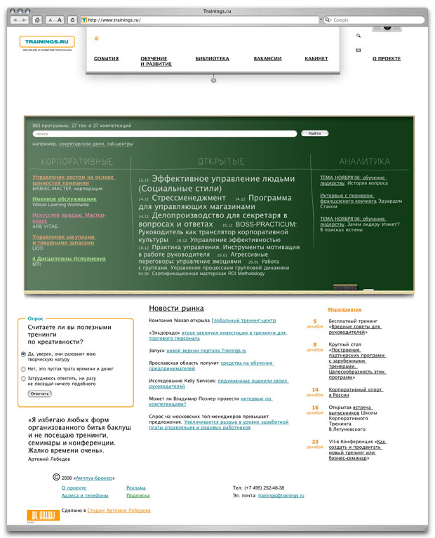 Trainings.Ru is an Emloi Broker project launched in 2000. It deals with human resource management.