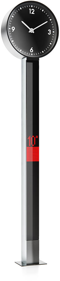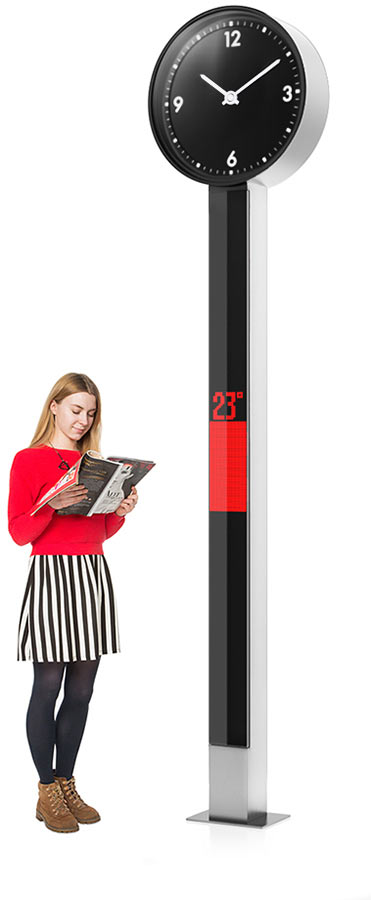 Tsiferblatus-6 is a modern city clock with a round face designed for installation on public transport stops, near Metro stations, in sports complexes and facilities, as well as in areas of heavy pedestrian traffic such as entrances to trade and business centers.