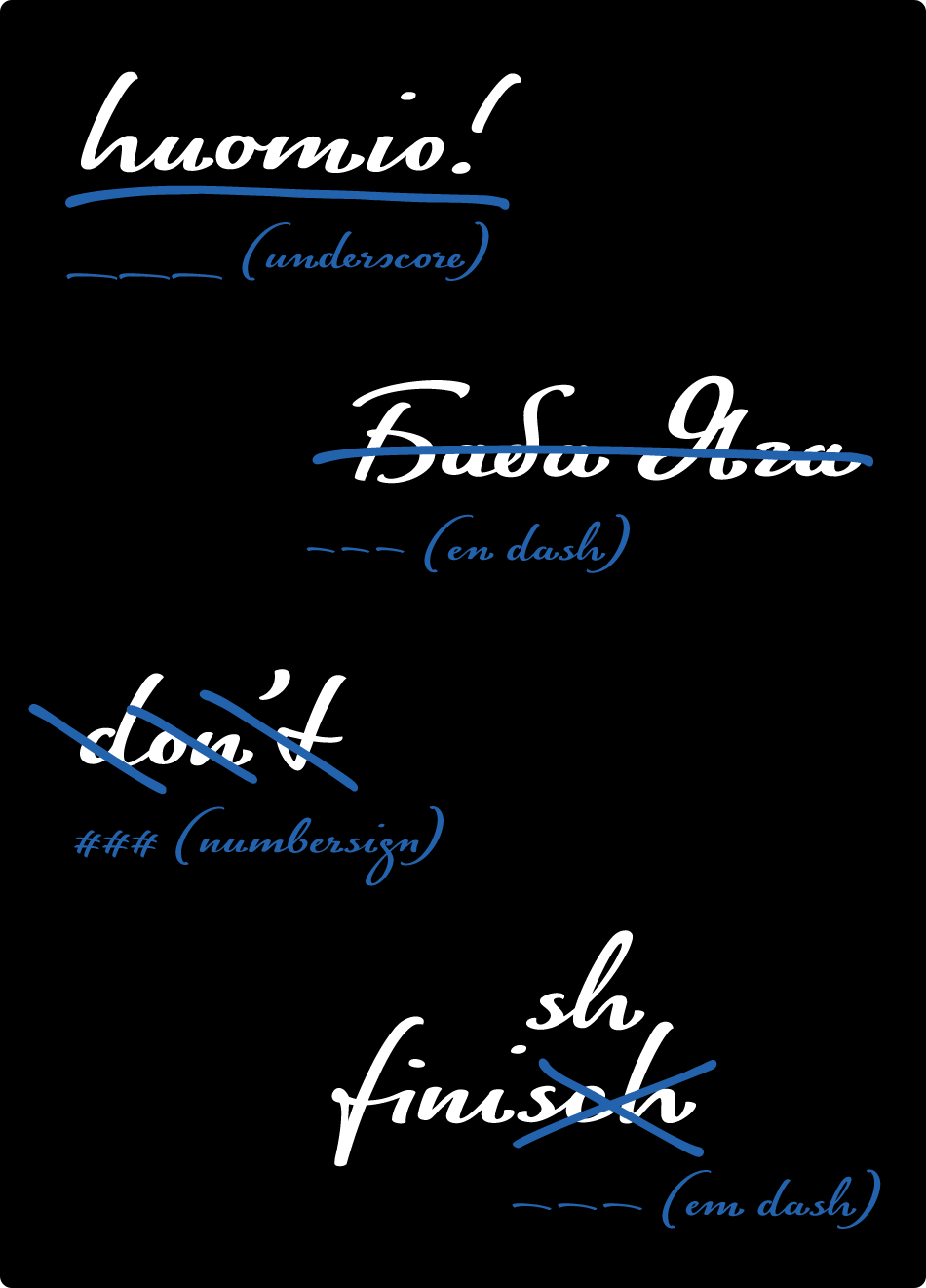 Finlandia Script has its origins in musical scores and letters of the composer. The letters of the typeface are similar to Sibeilus’s handwriting in shape, balance and rhythm yet are not an exact copy. The type forms smooth lines of text, highly legible, easily readable, with a very expressive but gentle character.