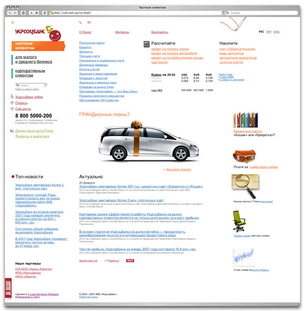 The first version of the website was opened by Art. Lebedev Studio in 2003. Since then the bank has expanded the range of services and become more focused on retail customers.