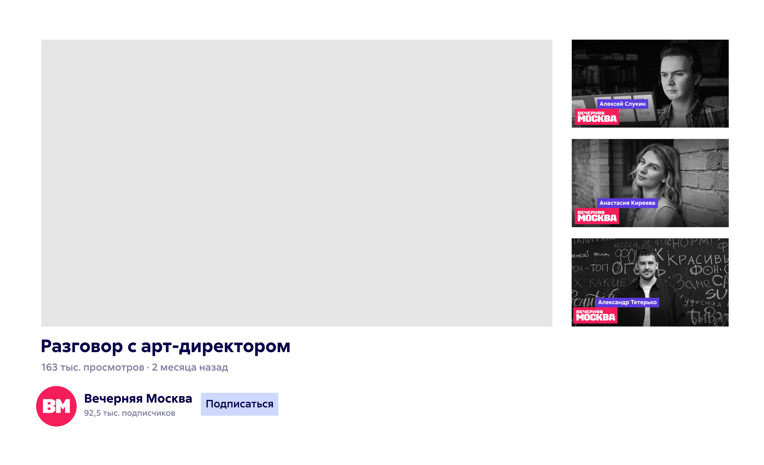 Vecherka’s signature feature is its panels, by which the publication is recognized even faster than by the logo. The colored rectangle symbolizes any unit of content: a newspaper column, a video clip, a block on television, a post on social media. Such blocks are laid into a common content grid and become the main tools of the identity.