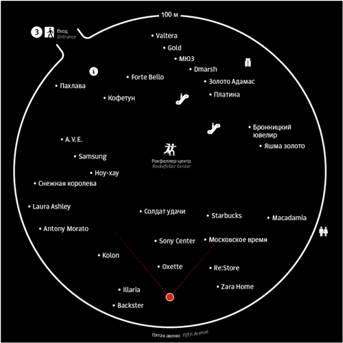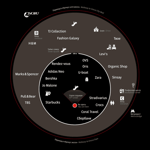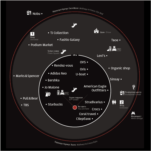 Simultaneously experimenting with the legend and with showing the adjacent territory of Crocus City Mall.