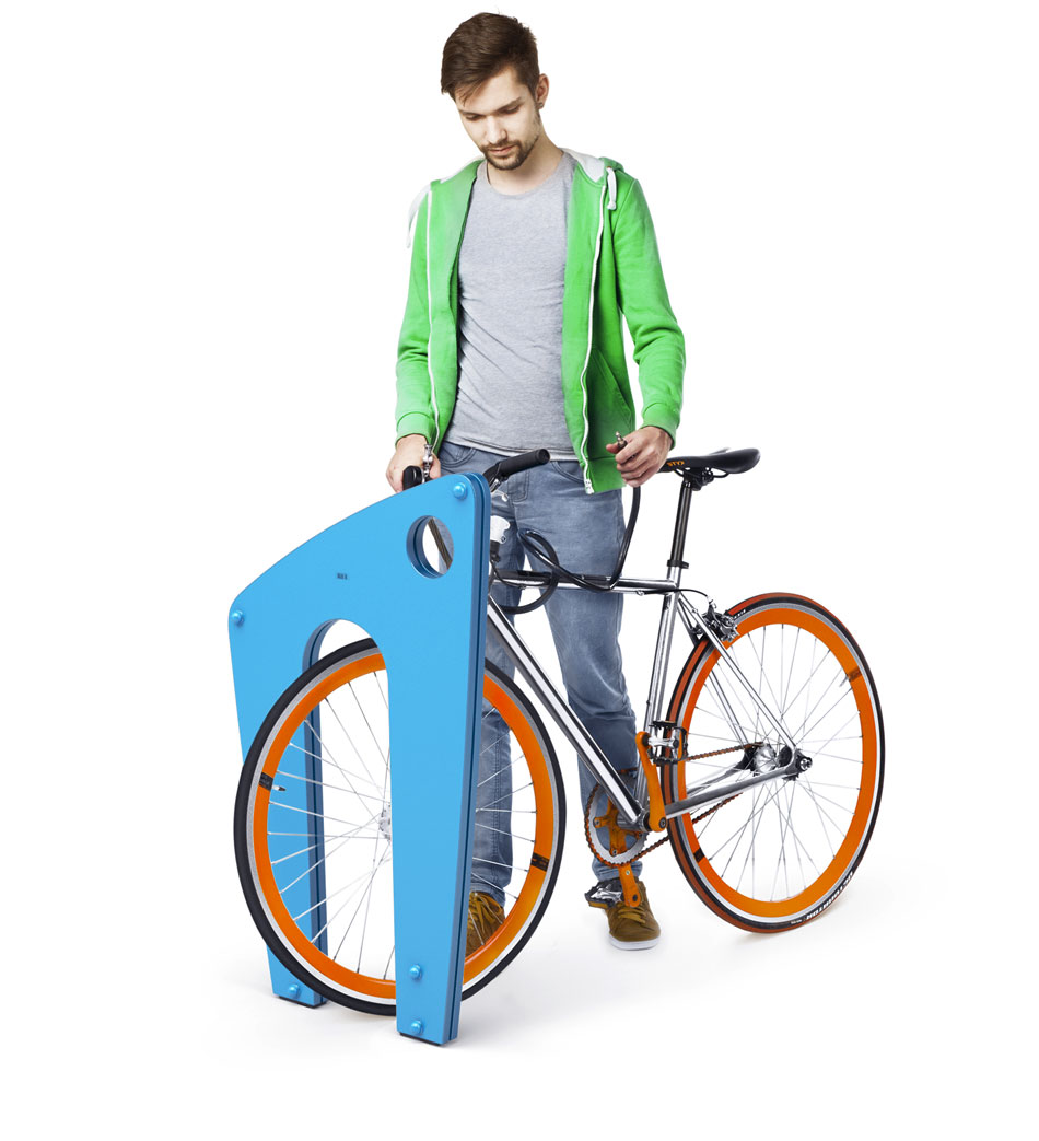 The racks are made of two high pressure laminate panels that are connected together by bolts and bushings. Panels have holes for securing the bicycle using standard anti-theft devices.