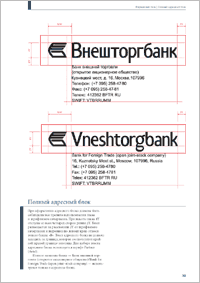 Art. Lebedev Studio developed the detailed guidelines for the new corporate identity, the rules of Vneshtorgbanks exteriors and interiors design. The documents contain recommendations for use and the description of: |