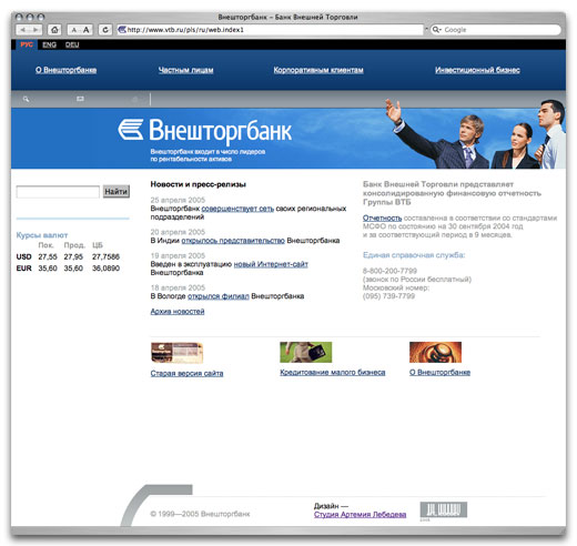 The studio worked on the website for eight months. During this time, we met with the representatives from all of the banks departments and found out what they actually wanted the website to be like, and what it should contain. As a result, the website structure was built. ![]() Website main page