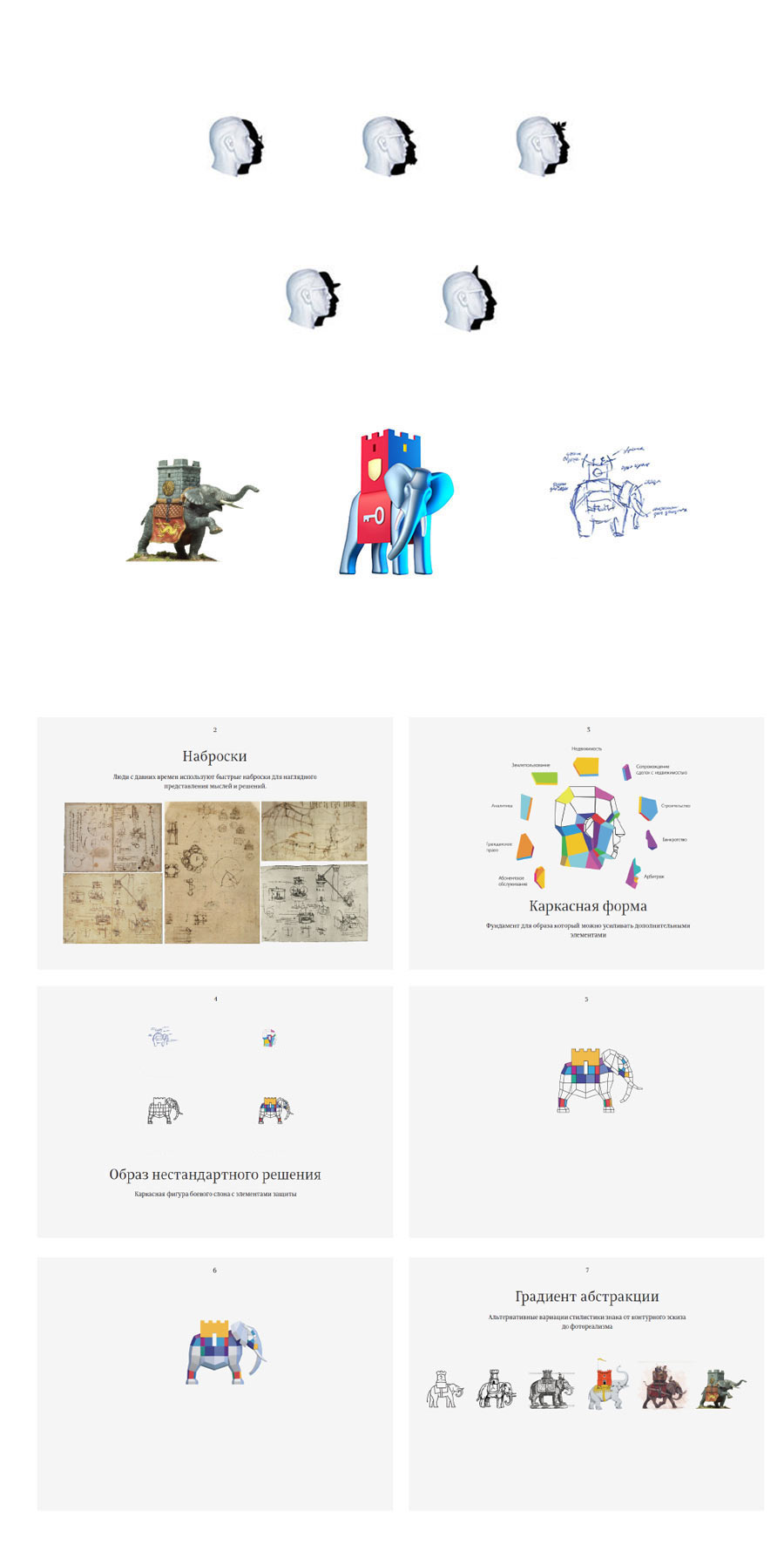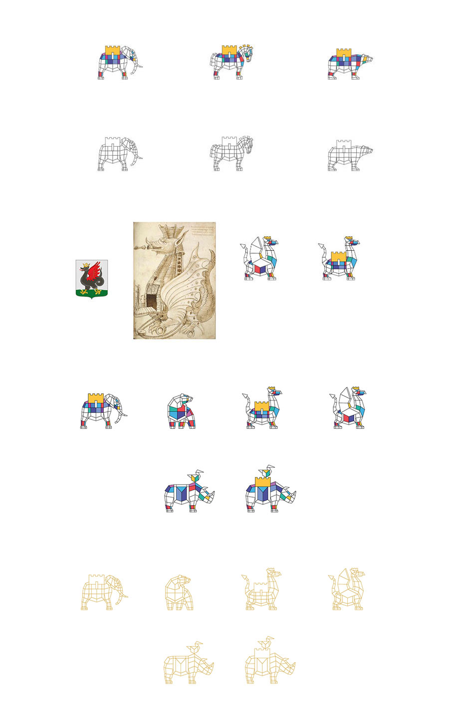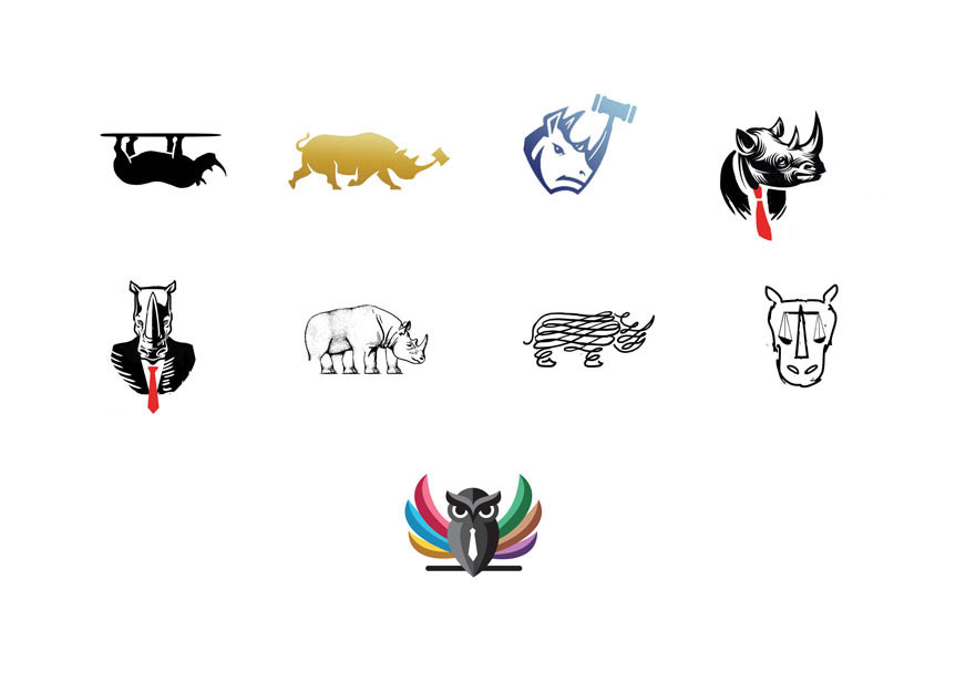 The client asks to work with the rhino but in a different graphic version as well as to go back to one of the previous idea with two heads and work it out as well.