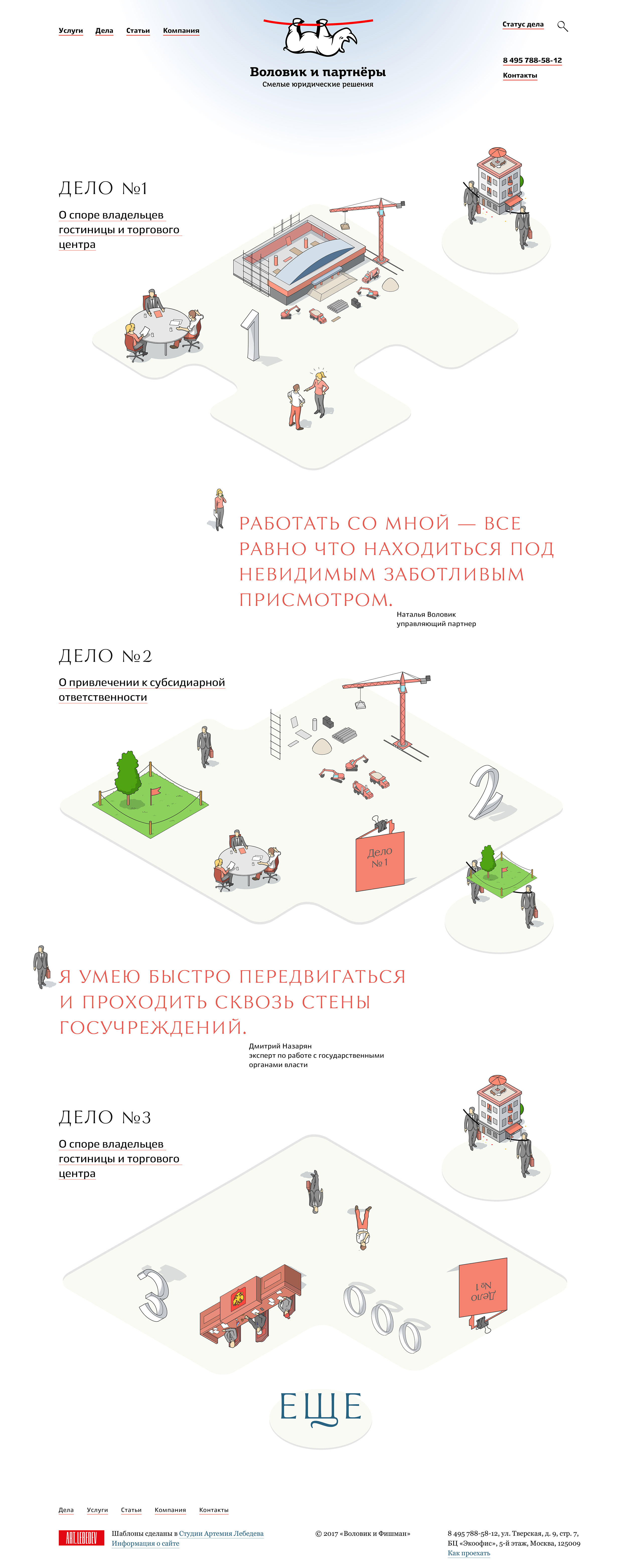 Volovik and Partners resolves disputes in real estate, construction and land use. Each case is like a game and the company’s website shows games that adults play.