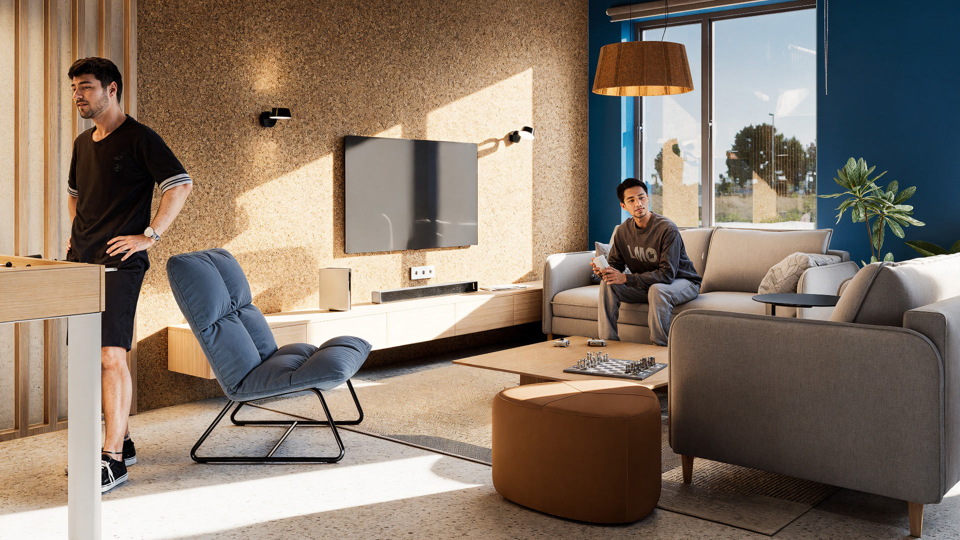 Each zone of the living rooms features different wall and ceiling finishes, while the furniture can be adjusted according to the residents’ preferences, making the interior flexible and functional.