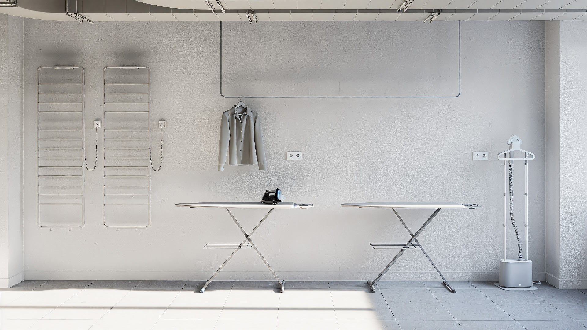The shared laundry room contains everything necessary: washing and drying machines in sufficient quantities for all residents, ironing boards and a steam iron. There is also a hand-washing area with convenient electric towel dryers.