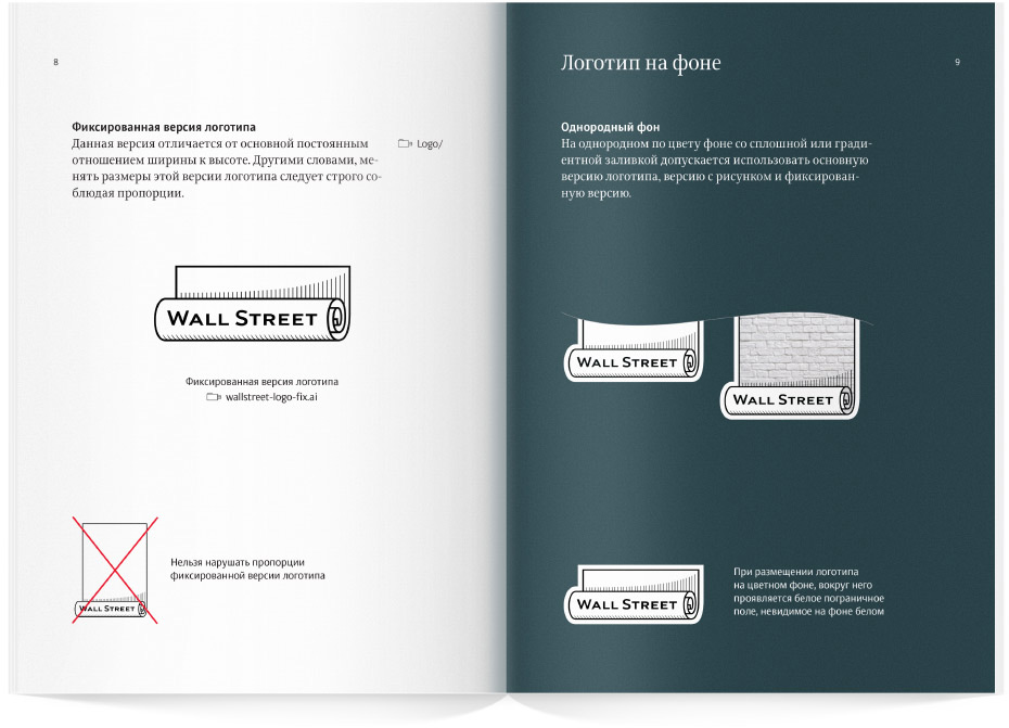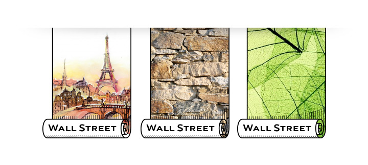 Wall Street sells wall murals in its own online store, offering the customers a choice of materials, a multitude of ready-made solutions and the ability to use their own designs. A logo literally reflecting the company’s sphere of business was developed at the studio.