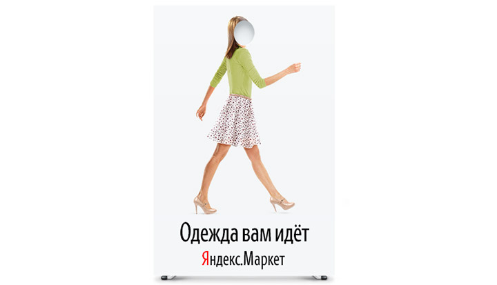 The new advertising campaign for Yandex Wardrobe is based on the face cut-out board, which allows you to try on the new clothes.