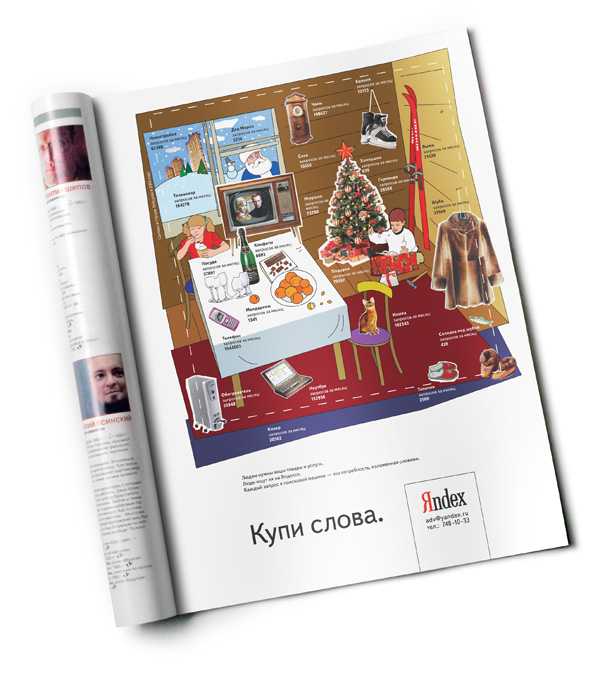 The series of advertising pages for Yandex context advertising has been published since 2003. This time the Buy Words advertising was designed for the New Year words. ![]() |