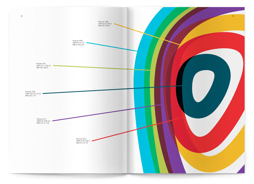 The logo alludes to contour lines on topographic maps and nature patterns: tree growth rings, patterns on rocks and sea shells. Each division of the project got its own color version of the logo.